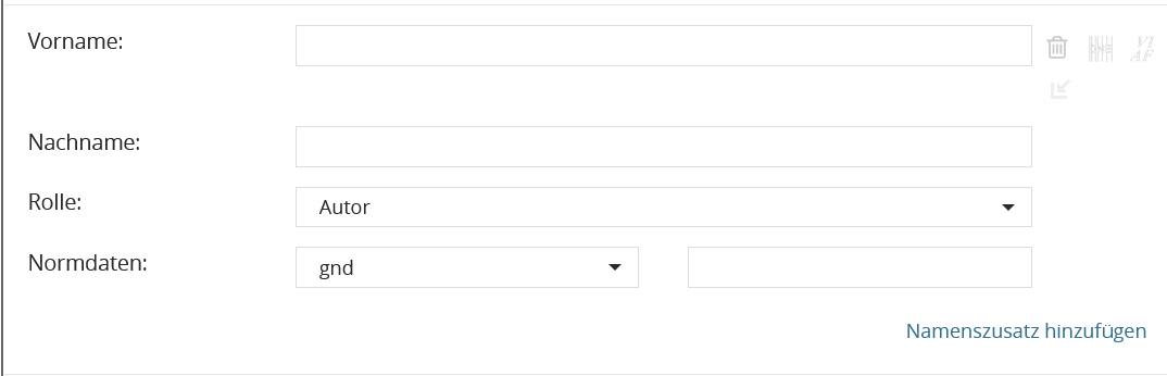 In der Metadatenerschließungsmaske kann ich im Reiter “Metadaten” weitere Personen hinzufügen, die z.B. beim Import der Katalogdaten beim Anlegen eines Vorganges nicht importiert wurden.